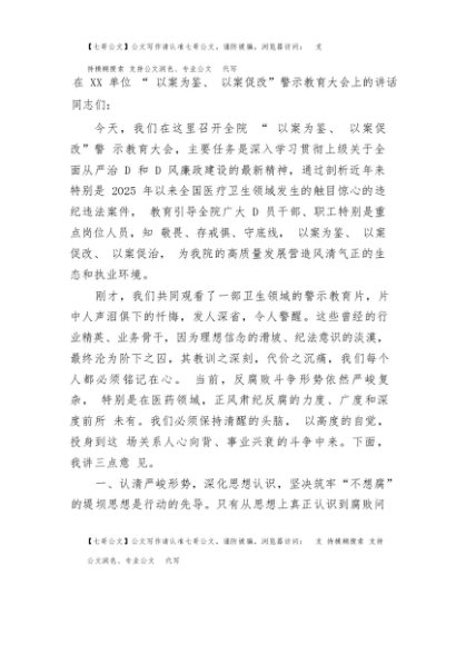 【七哥公文】2025年:在XX单位以案为鉴、以案促改警示教育大会上的讲话+更多免费公文+VX:QiGeGongWen2024