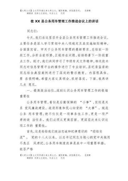 / 【七哥公文】2025年:在XX县公务用车管理工作推进会议上的讲话+更多免费公文+VX:QiGeGongWen2024