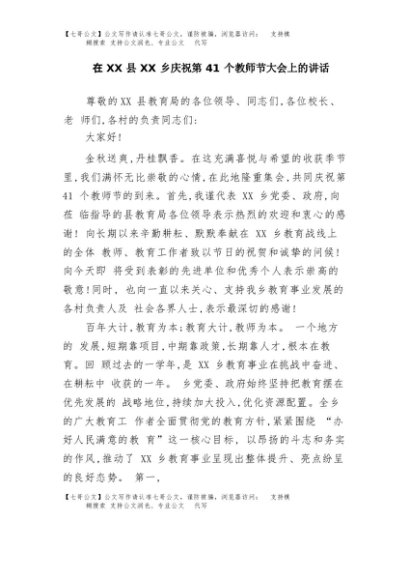 / 【七哥公文】2025年:在XX县XX乡庆祝第41个教师节大会上的讲话+更多免费公文+VX:QiGeGongWen2024