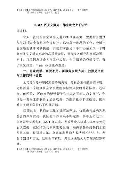 / 【七哥公文】2025年:在XX区见义勇为工作座谈会上的讲话+更多免费公文+VX:QiGeGongWen2024