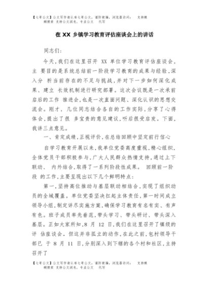 / 【七哥公文】2025年:在XX乡镇学习教育评估座谈会上的讲话+更多免费公文+VX:QiGeGongWen2024