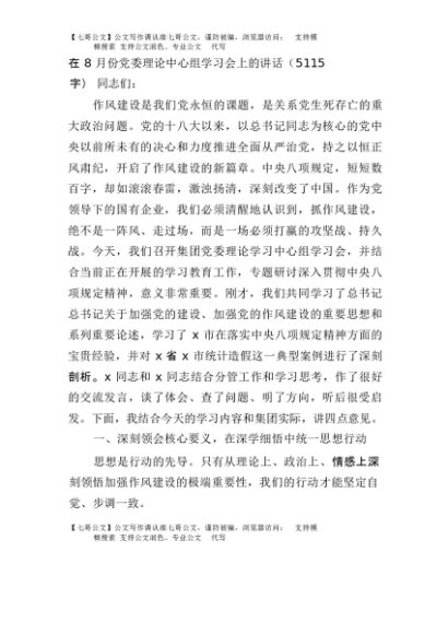 【七哥公文】2025年:在8月份党委理论中心组学习会上的讲话(5115字)+更多免费公文+VX:QiGeGongWen2024