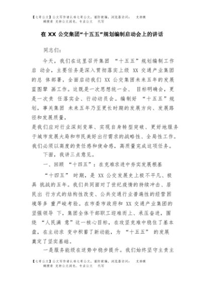 / 【七哥公文】2025年:在XX公交集团“十五五”规划编制启动会上的讲话+更多免费公文+VX:QiGeGongWen2024