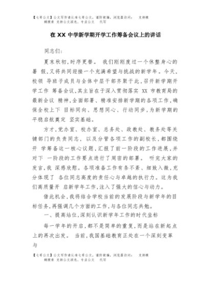 / 【七哥公文】2025年:在XX中学新学期开学工作筹备会议上的讲话+更多免费公文+VX:QiGeGongWen2024