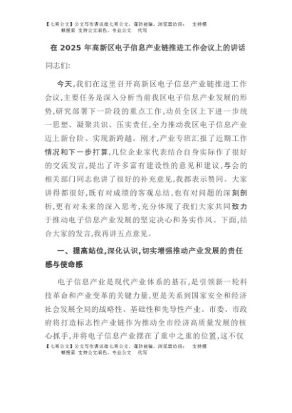 【七哥公文】2025年:在2025年高新区电子信息产业链推进工作会议上的讲话+更多免费公文+VX:QiGeGongWen2024