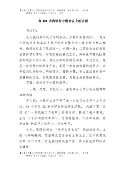 / 【七哥公文】2025年:在XX农商银行专题会议上的讲话+更多免费公文+VX:QiGeGongWen2024