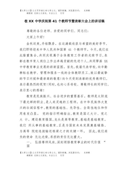 【七哥公文】2025年:在XX中学庆祝第41个教师节暨表彰大会上的讲话稿+更多免费公文+VX:QiGeGongWen2024