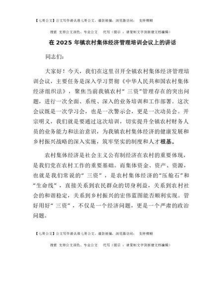 / 【七哥公文】2025年:在2025年镇农村集体经济管理培训会议上的讲话+更多免费公文+VX:QiGeGongWen2024