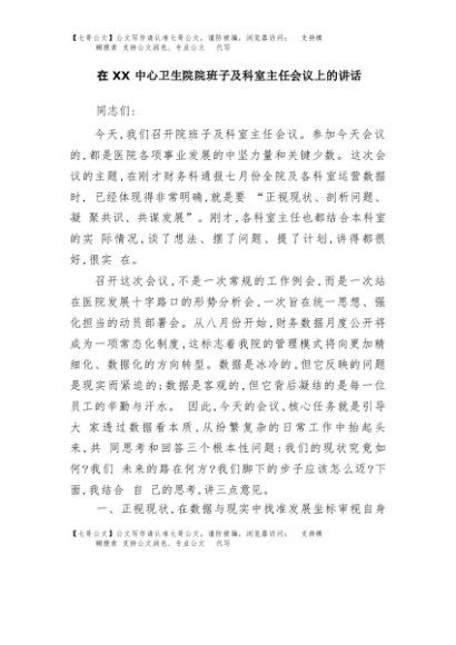 / 【七哥公文】2025年:在XX中心卫生院院班子及科室主任会议上的讲话+更多免费公文+VX:QiGeGongWen2024