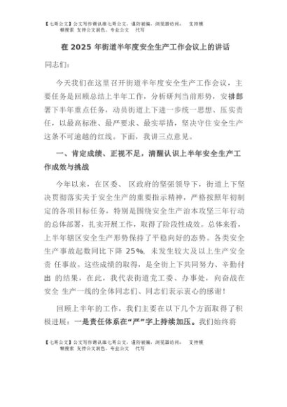 / 【七哥公文】2025年:在2025年街道半年度安全生产工作会议上的讲话+更多免费公文+VX:QiGeGongWen2024