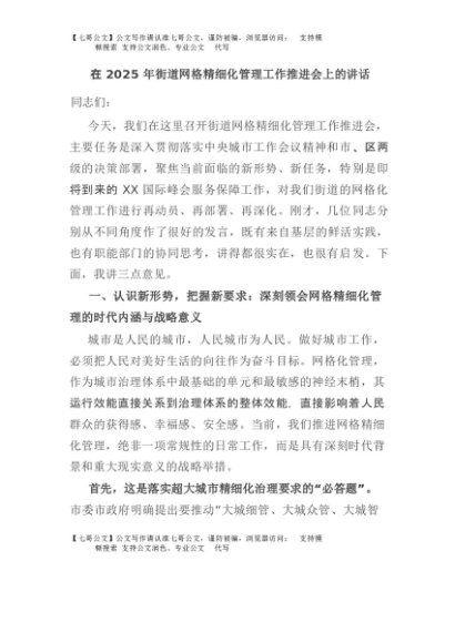 【七哥公文】2025年:在2025年街道网格精细化管理工作推进会上的讲话+更多免费公文+VX:QiGeGongWen2024