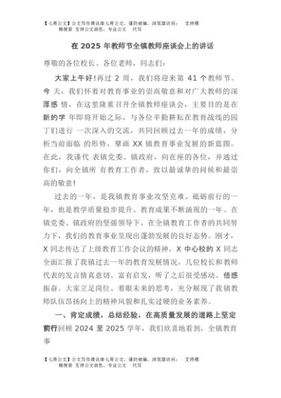 / 【七哥公文】2025年:在2025年教师节全镇教师座谈会上的讲话+更多免费公文+VX:QiGeGongWen2024