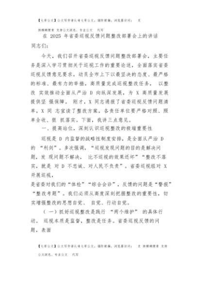 / 【七哥公文】2025年:在2025年省委巡视反馈问题整改部署会上的讲话+更多免费公文+VX:QiGeGongWen2024