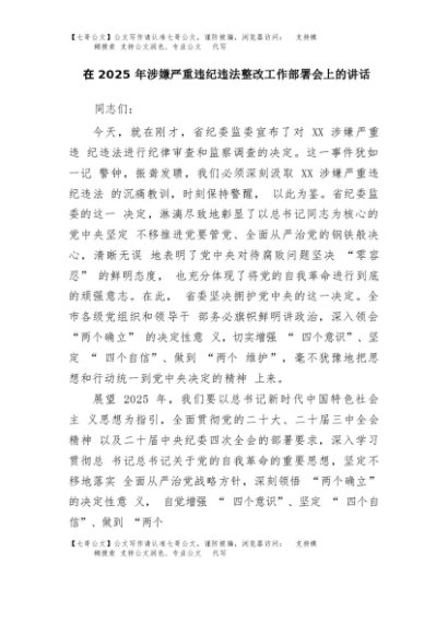 【七哥公文】2025年:在2025年涉嫌严重违纪违法整改工作部署会上的讲话+更多免费公文+VX:QiGeGongWen2024