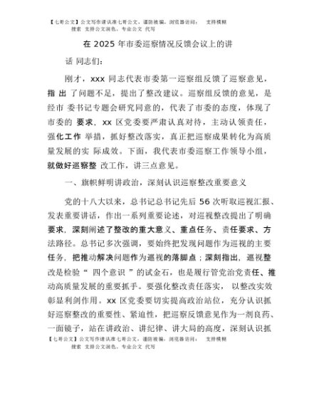 / 【七哥公文】2025年:在2025年市委巡察情况反馈会议上的讲话+更多免费公文+VX:QiGeGongWen2024