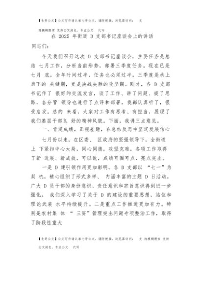 / 【七哥公文】2025年:在2025年街道党支部书记座谈会上的讲话+更多免费公文+VX:QiGeGongWen2024