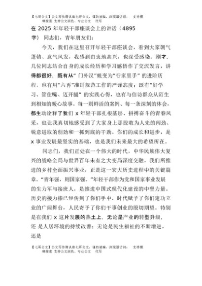 【七哥公文】2025年:在2025年年轻干部座谈会上的讲话(4895字)+更多免费公文+VX:QiGeGongWen2024