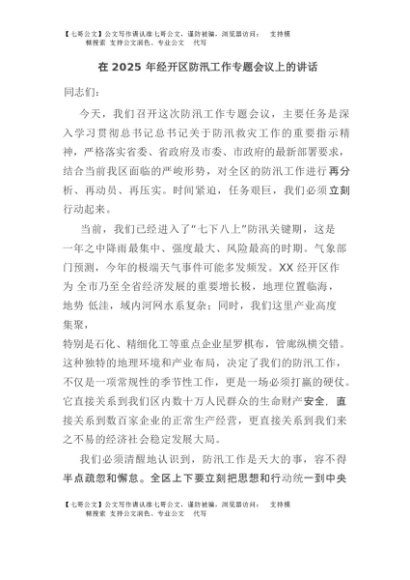 / 【七哥公文】2025年:在2025年经开区防汛工作专题会议上的讲话+更多免费公文+VX:QiGeGongWen2024