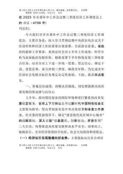 【七哥公文】2025年:在2025年市委年中工作会议暨三季度经济工作调度会上的讲话(4798字)+更多免费公文+VX:QiGeGongWen2024
