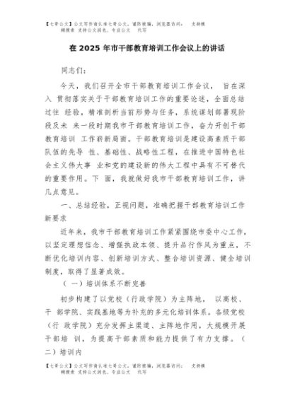 / 【七哥公文】2025年:在2025年市干部教育培训工作会议上的讲话+更多免费公文+VX:QiGeGongWen2024