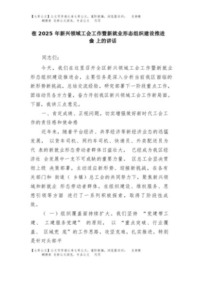 【七哥公文】2025年:在2025年新兴领域工会工作暨新就业形态组织建设推进会上的讲话+更多免费公文+VX:QiGeGongWen2024