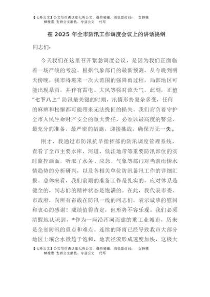 / 【七哥公文】2025年:在2025年全市防汛工作调度会议上的讲话提纲+更多免费公文+VX:QiGeGongWen2024