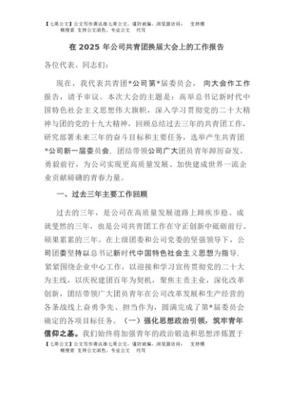 / 【七哥公文】2025年:在2025年公司共青团换届大会上的工作报告+更多免费公文+VX:QiGeGongWen2024