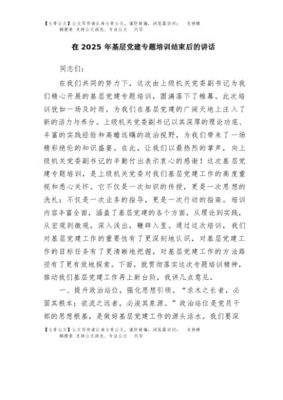/ 【七哥公文】2025年:在2025年基层党建专题培训结束后的讲话+更多免费公文+VX:QiGeGongWen2024