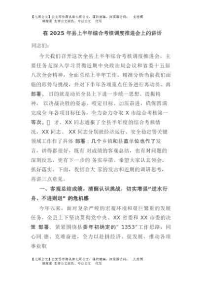 / 【七哥公文】2025年:在2025年县上半年综合考核调度推进会上的讲话+更多免费公文+VX:QiGeGongWen2024