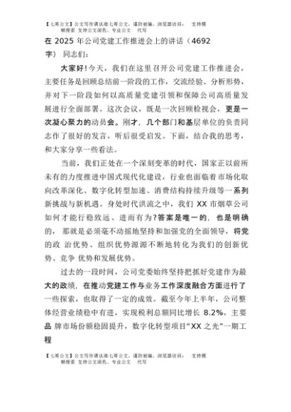 【七哥公文】2025年:在2025年国企党建工作推进会上的讲话(4692字)+更多免费公文+VX:QiGeGongWen2024