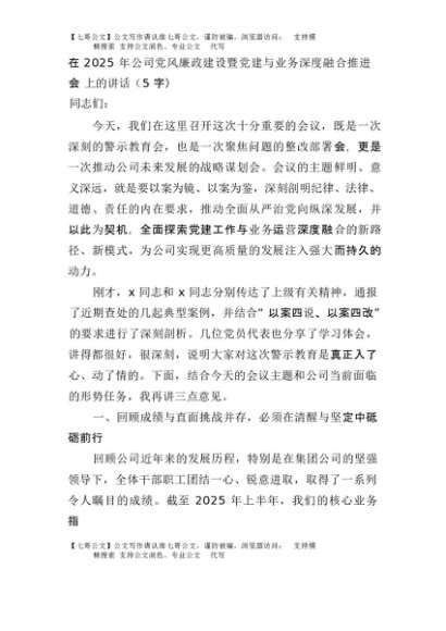 【七哥公文】2025年:在2025年国企党风廉政建设暨党建与业务深度融合推进会上的讲话(5242字)+更多免费公文+VX:QiGeGongWen2024