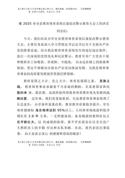 【七哥公文】2025年:在2025年全县教育体育系统以案促改警示教育大会上的讲话+更多免费公文+VX:QiGeGongWen2024