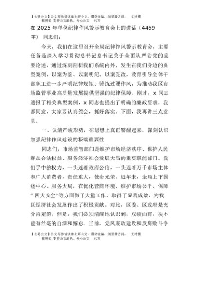 【七哥公文】2025年:在2025年单位纪律作风警示教育会上的讲话(4469字)+更多免费公文+VX:QiGeGongWen2024