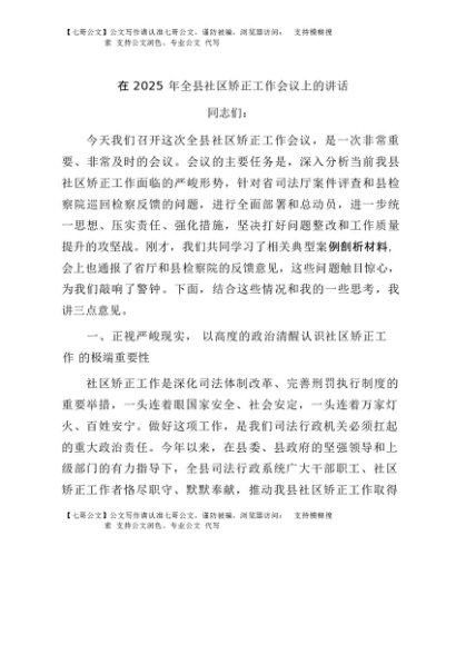 / 【七哥公文】2025年:在2025年全县社区矫正工作会议上的讲话+更多免费公文+VX:QiGeGongWen2024