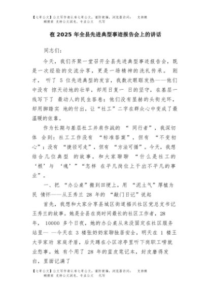 / 【七哥公文】2025年:在2025年全县先进典型事迹报告会上的讲话+更多免费公文+VX:QiGeGongWen2024