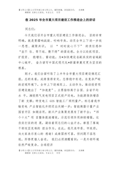 / 【七哥公文】2025年:在2025年全市重大项目建设工作推进会上的讲话+更多免费公文+VX:QiGeGongWen2024
