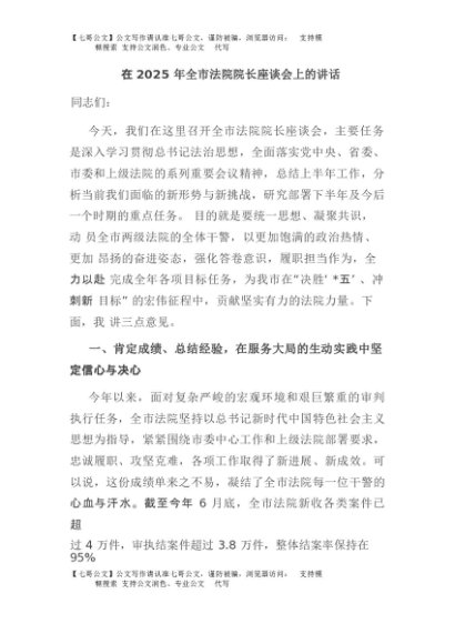/ 【七哥公文】2025年:在2025年全市法院院长座谈会上的讲话+更多免费公文+VX:QiGeGongWen2024