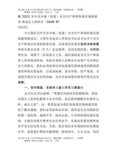 【七哥公文】2025年:在2025年全市乡镇(街道)安全生产和消防基层基础建设推进会上的讲话(5608字)+更多免费公文+VX:QiGeGongWen2024
