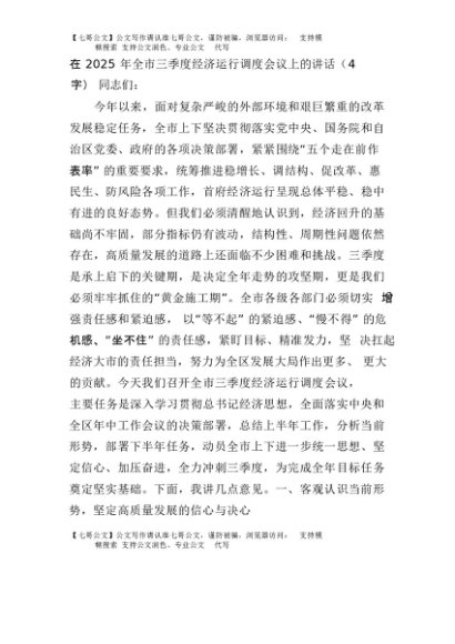 【七哥公文】2025年:在2025年全市三季度经济运行调度会议上的讲话(4867字)+更多免费公文+VX:QiGeGongWen2024