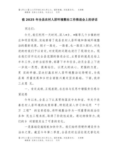 【七哥公文】2025年:在2025年全县农村人居环境整治工作推进会上的讲话+更多免费公文+VX:QiGeGongWen2024