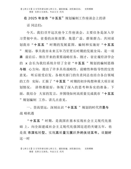 【七哥公文】2025年:在2025年全市“十五五”规划编制工作座谈会上的讲话+更多免费公文+VX:QiGeGongWen2024