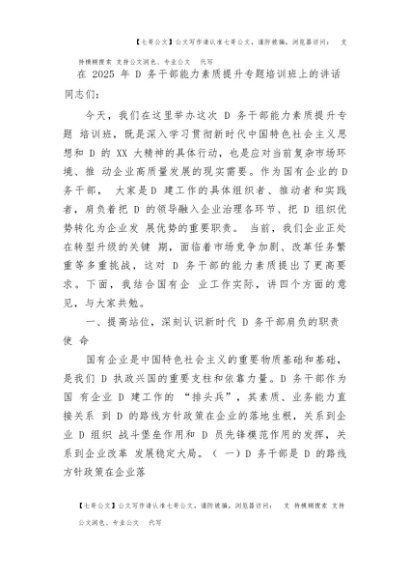 【七哥公文】2025年:在2025年党务干部能力素质提升专题培训班上的讲话+更多免费公文+VX:QiGeGongWen2024