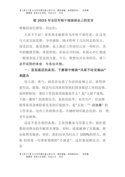 / 【七哥公文】2025年:在2025年全区年轻干部座谈会上的发言+更多免费公文+VX:QiGeGongWen2024