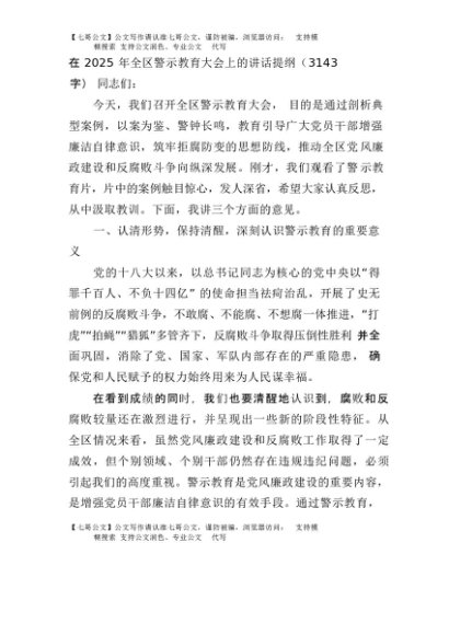 【七哥公文】2025年:在2025年全区警示教育大会上的讲话提纲(3143字)+更多免费公文+VX:QiGeGongWen2024