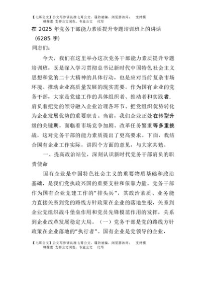 【七哥公文】2025年:在2025年党务干部能力素质提升专题培训班上的讲话(6285字)+更多免费公文+VX:QiGeGongWen2024