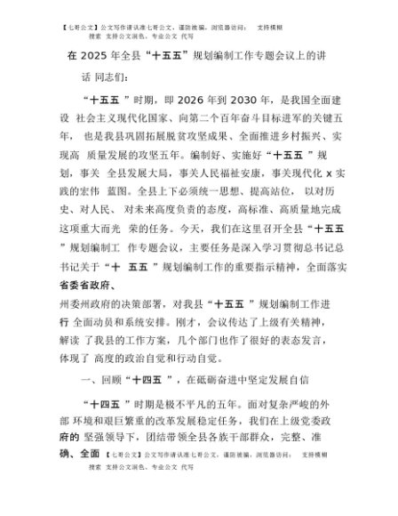 【七哥公文】2025年:在2025年全县“十五五”规划编制工作专题会议上的讲话+更多免费公文+VX:QiGeGongWen2024