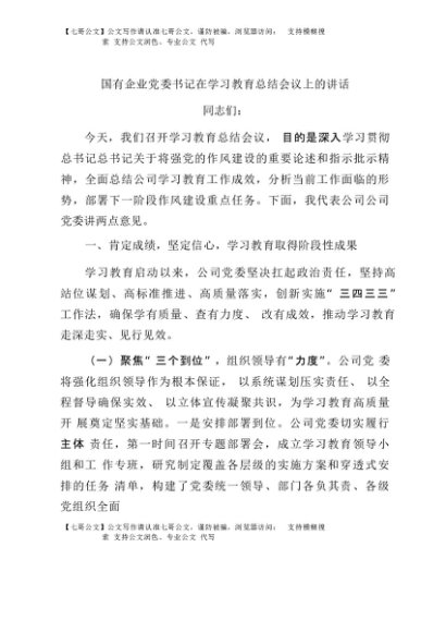 / 【七哥公文】2025年:国有企业党委书记在学习教育总结会议上的讲话+更多免费公文+VX:QiGeGongWen2024
