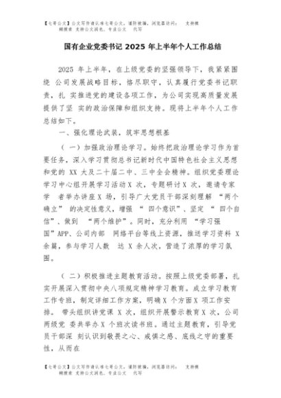 / 【七哥公文】2025年:国有企业党委书记2025年上半年个人工作总结+更多免费公文+VX:QiGeGongWen2024