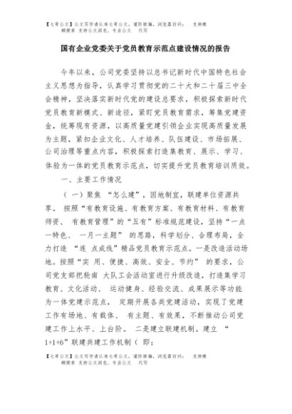 / 【七哥公文】2025年:国有企业党委关于党员教育示范点建设情况的报告+更多免费公文+VX:QiGeGongWen2024