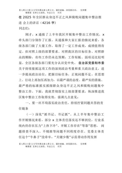 【七哥公文】2025年:在2025年全区群众身边不正之风和腐败问题集中整治推进会上的讲话(4216字)+更多免费公文+VX:QiGeGongWen2024